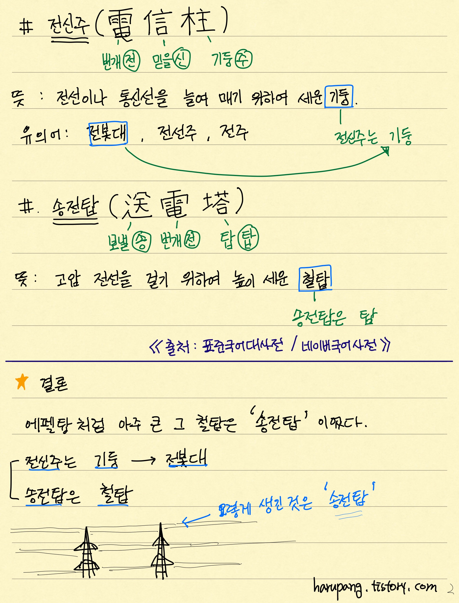 #송전탑(送電塔 / 보낼 송, 번개 전, 탑 탑)