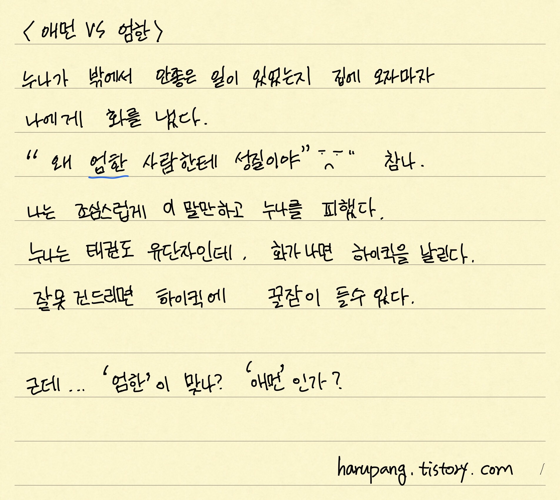 근데.. '엄한'이 맞나? '애먼'이 맞나? 뭐지?