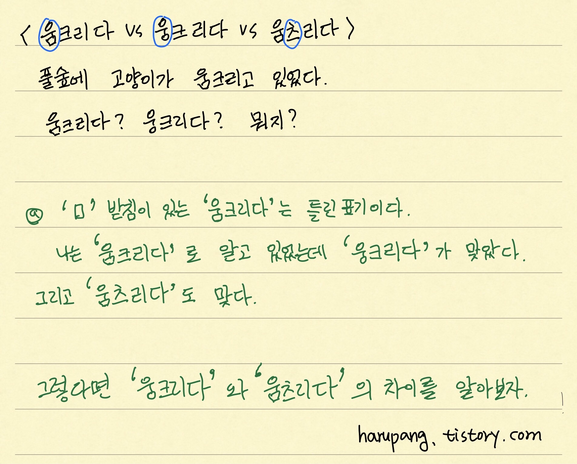 <움크리다 vs 웅크리다 vs 움츠리다>
