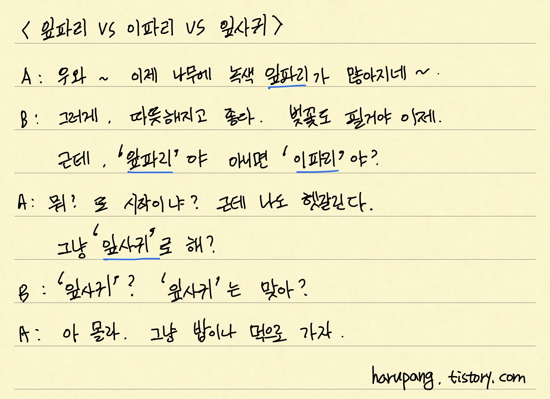 그렇다면 왜 '이파리'가 맞을까?