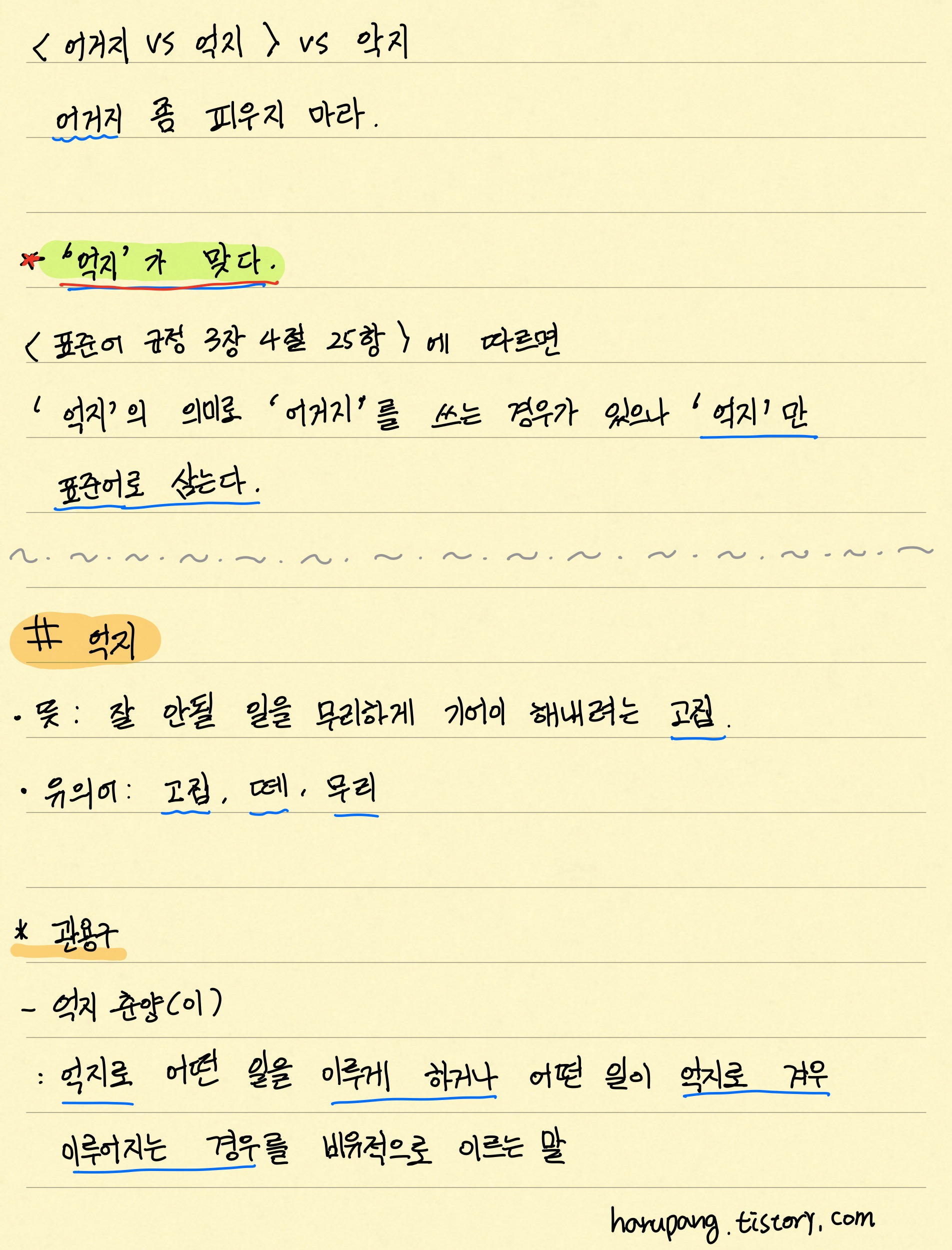 어거지 vs 억지 vs 악지 -맞춤법 -어거지 좀 피우지 마라