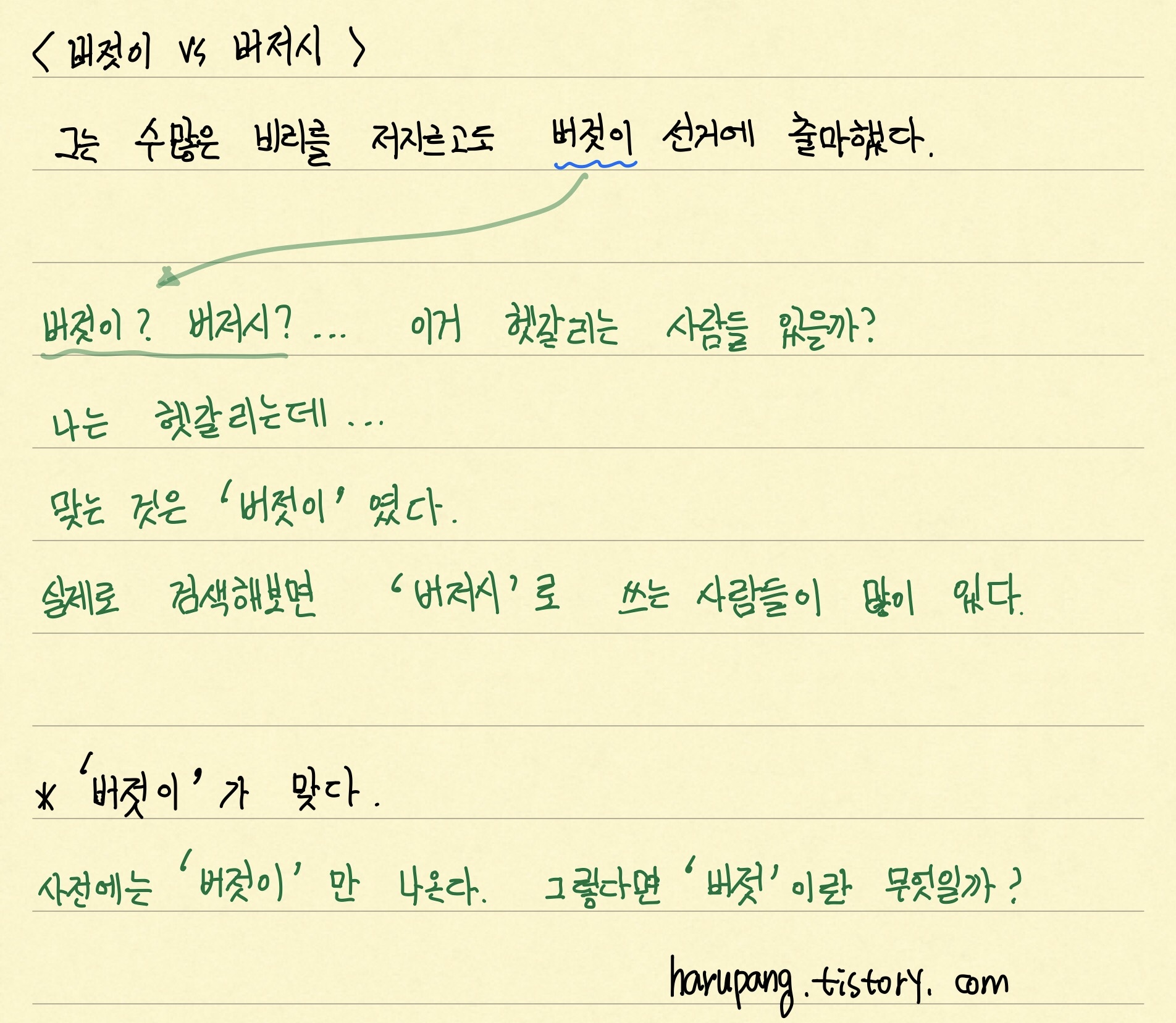 버젓이? 버저시? ... 이거 헷갈리는 사람들 있을까?