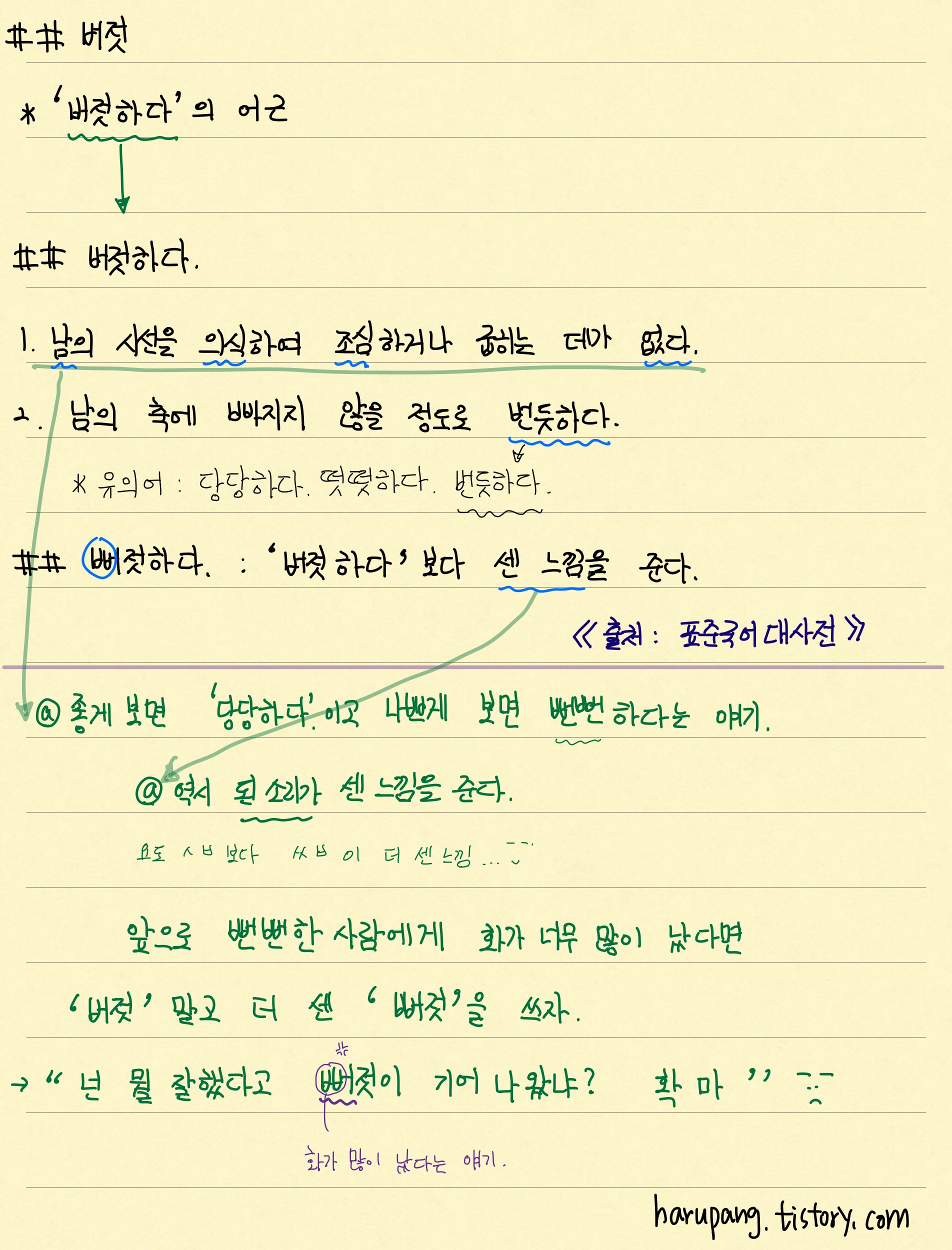 ##뻐젓하다 : '버젓하다'보다 센 느낌을 준다.