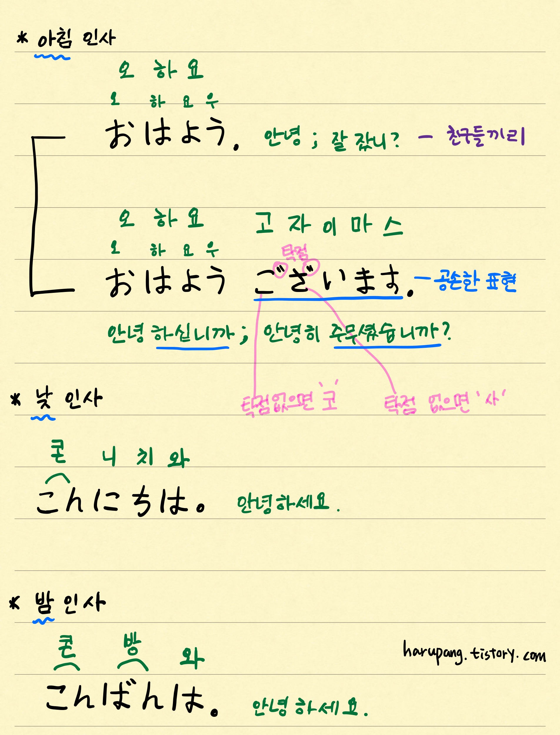 おはよう。오하요.